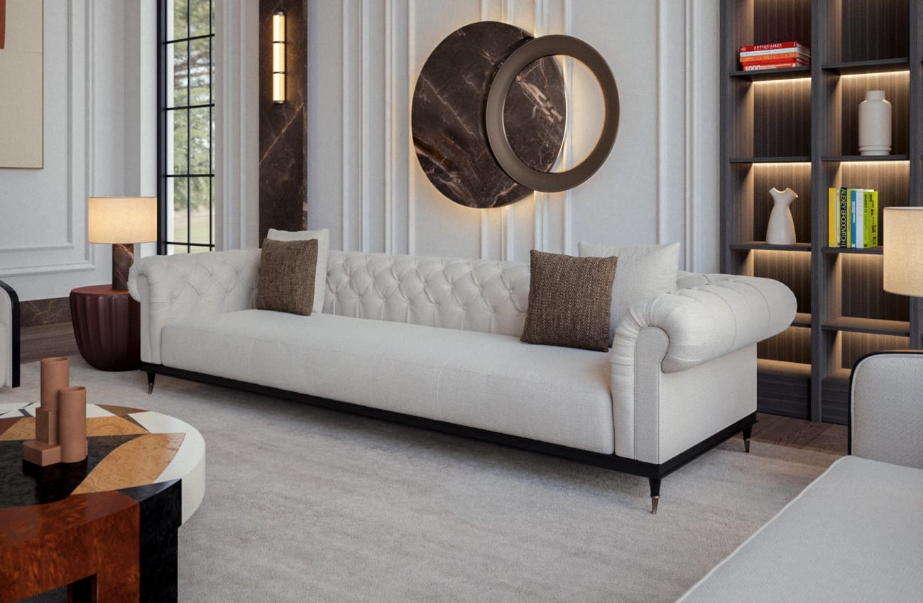 Klasik Chester stilini modern bir yorumla sunan Oslo Chester kanepe, düğme detayları ve rahat oturumu ile yaşam alanınıza sofistike bir hava katar.