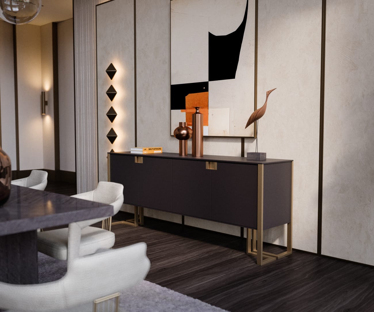 Zarif ve gösterişli Majestik konsol, detaylı oymaları ve geniş depolama alanı ile salonunuzda veya antrenizde şık bir atmosfer yaratır.