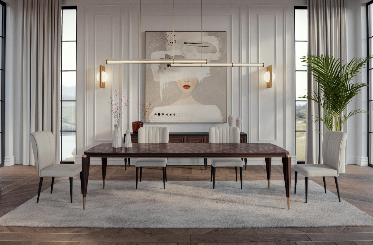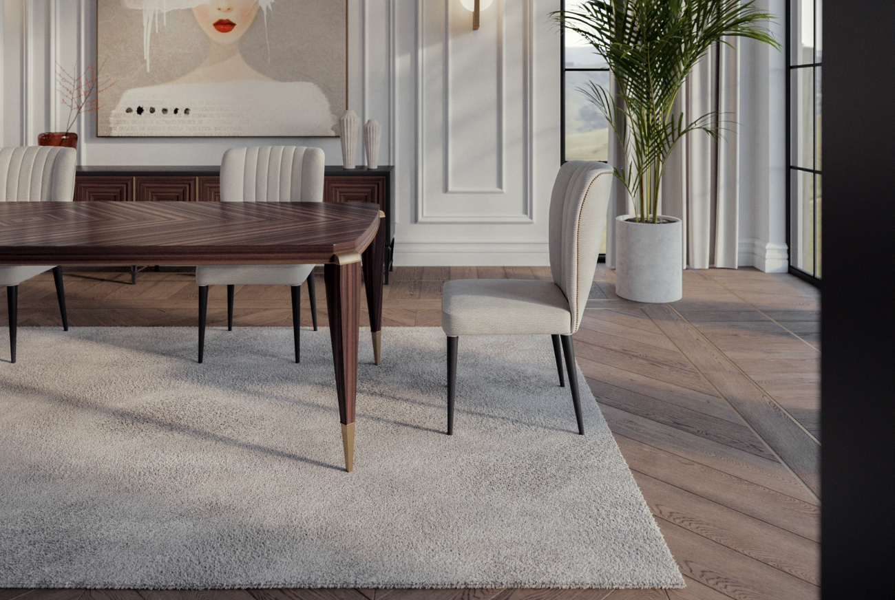 İhtişamlı ve şık Roma yemek masası, klasik tasarımı ve geniş yüzeyi ile unutulmaz yemek davetleri için idealdir. Detaylı ayakları ile göz alıcıdır.